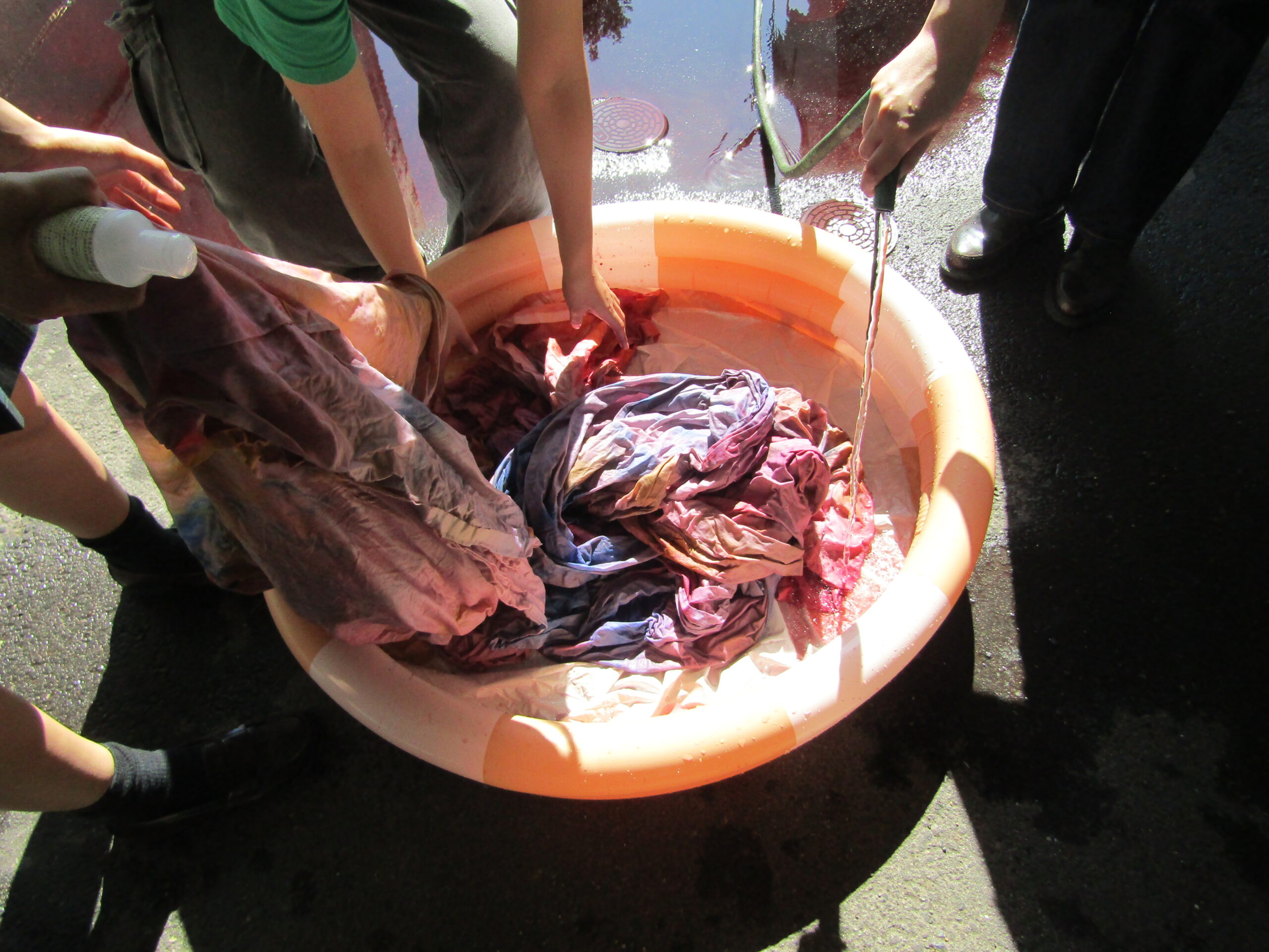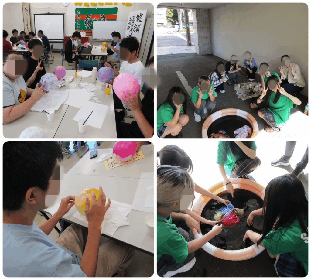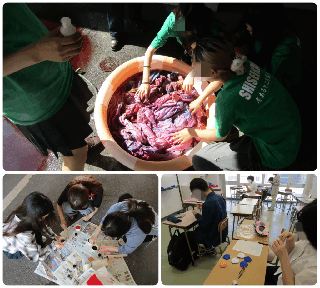 今回の文化祭の目玉であるデカい布の染色に挑戦しました。どうやったらいい感じに色がでるか、組み合わせが良くなるか生徒たち同士で工夫しながら作りましたよ。