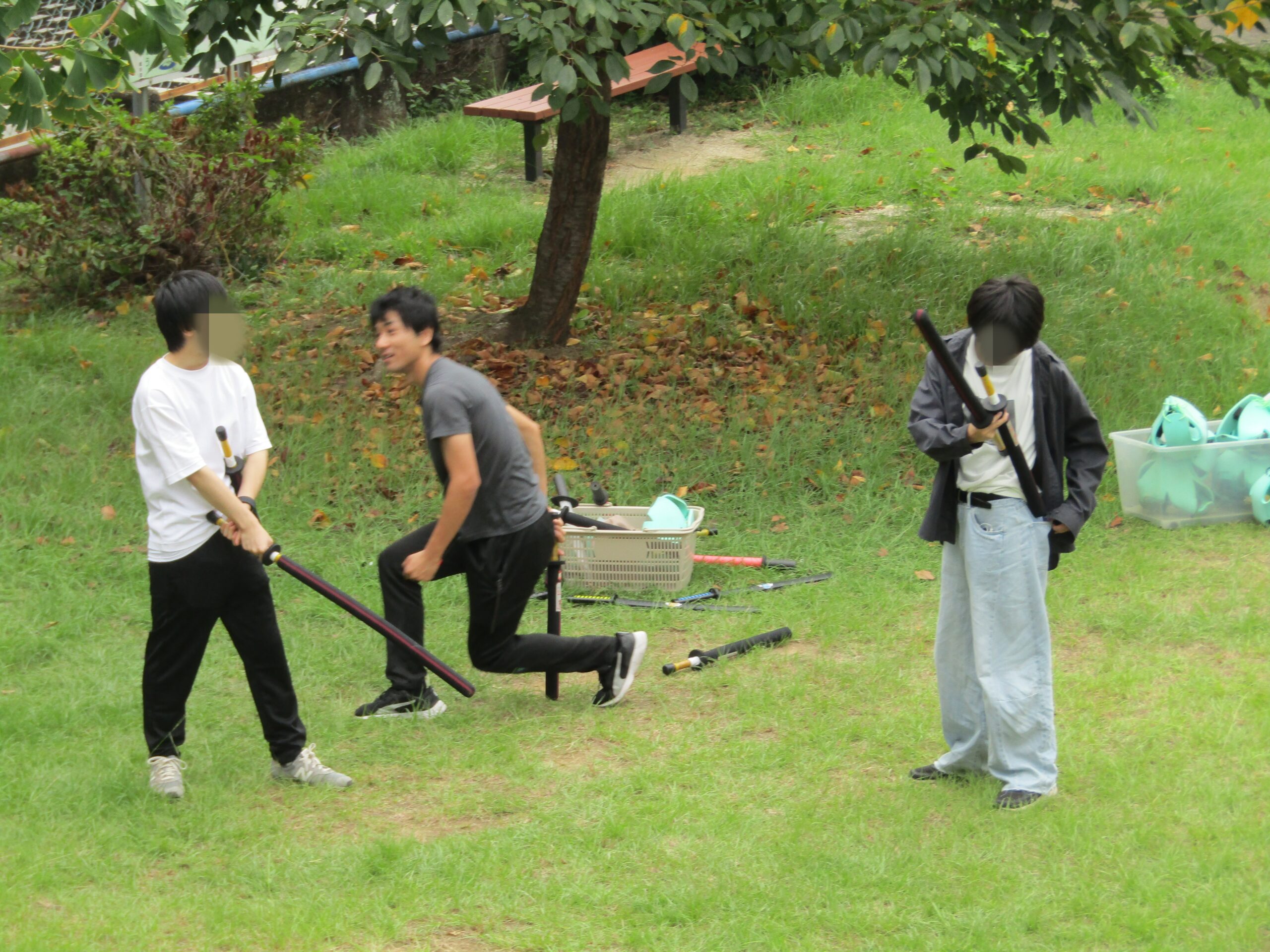 競技にもなっているチャンバラ。そんなチャンバラを志成館の隣の公園で行いました。