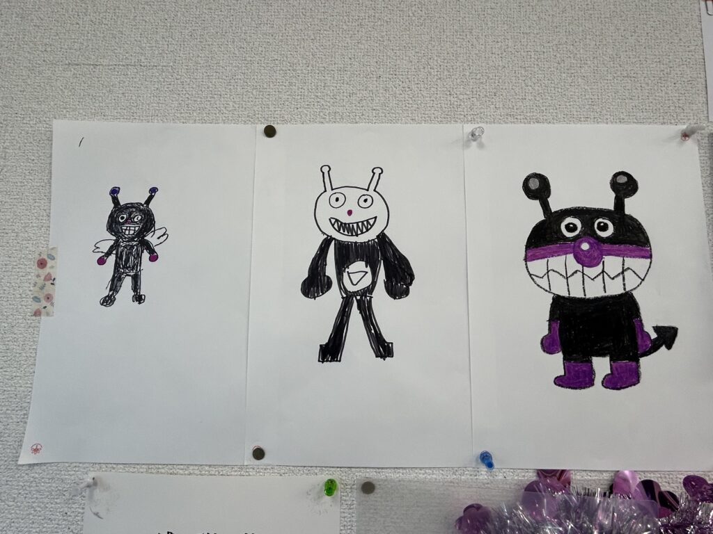 【令和7年11月6日(木) お絵描き大会】 2025年11月6日 コメントはまだありません 今日は放課後に生徒たちとお絵描きをしました。 まず、誰が一番ばいきんまんを何も見ずに上手に描けるかを競いました。 個性溢れる各々のばいきんまん、素晴らしいですね。 次に、とあるアンパンマンのキャラの名前と説明文だけを伝えて、どんなキャラなのか何も見ずに予想して描いてみました。ちなみにキャラの名前は「もくもくせんにん」です。 みなさんはどの「もくもくせんにん」が本家に近いと思いますか?ぜひ教えてくださいね。 共有:TwitterFacebookいいね:いいね 読み込み中… タグ: 生徒たちの様子