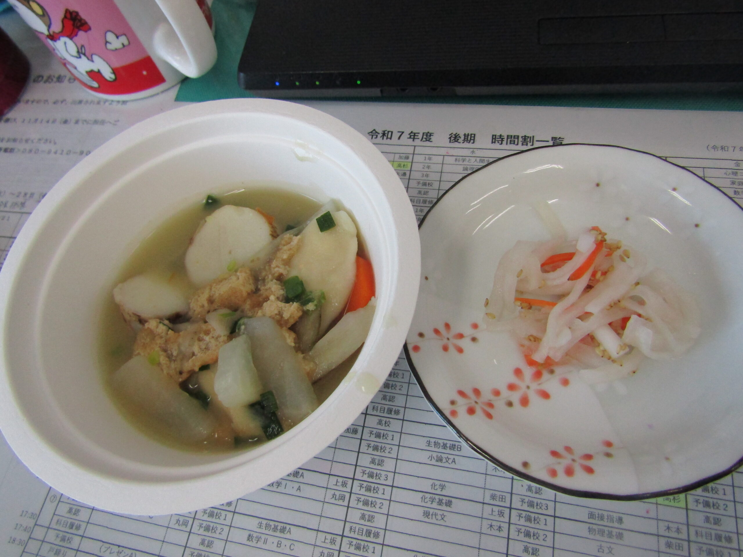 今回はだご汁と一緒に紅白なますも作っていましたよ。ニンジンと大根の千切りに四苦八苦していたようです。