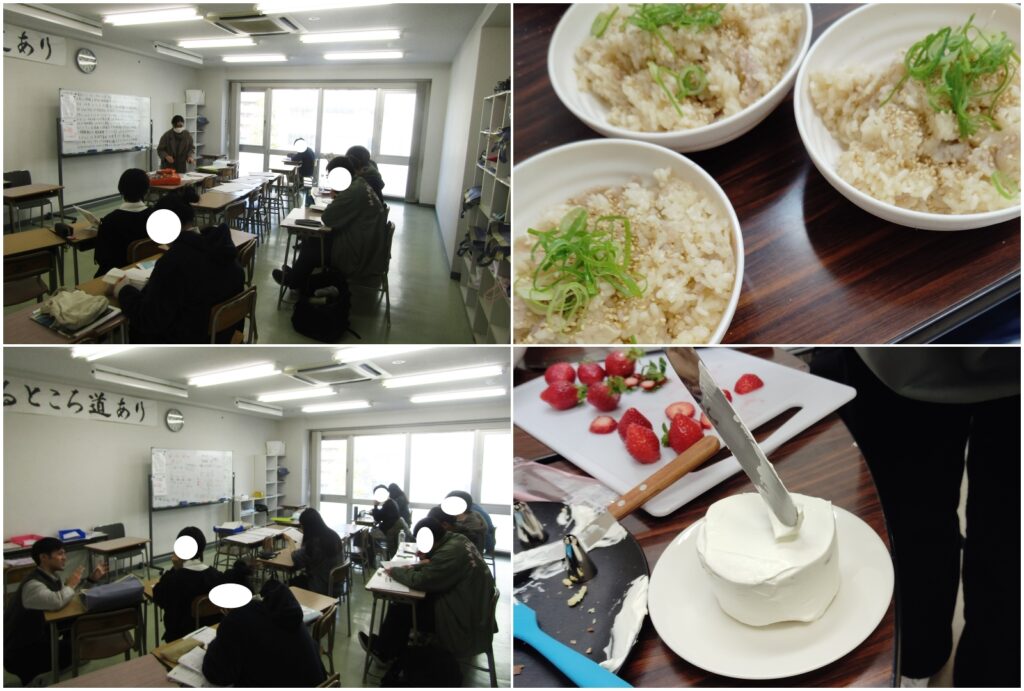 教室以外では何やら調理室から今日もおいしそうな香りが漂っていました。沖住先生が豚の炊き込みご飯をパティシエ志望の生徒が仲の良い3年生の先輩のために誕生日ケーキをせっせと作っていました。久しぶりにケーキを作る生徒の手元を眺めていましたが、以前と比べて本当に手際が良くなっていました。やっぱり経験を重ねることって大事ですね。