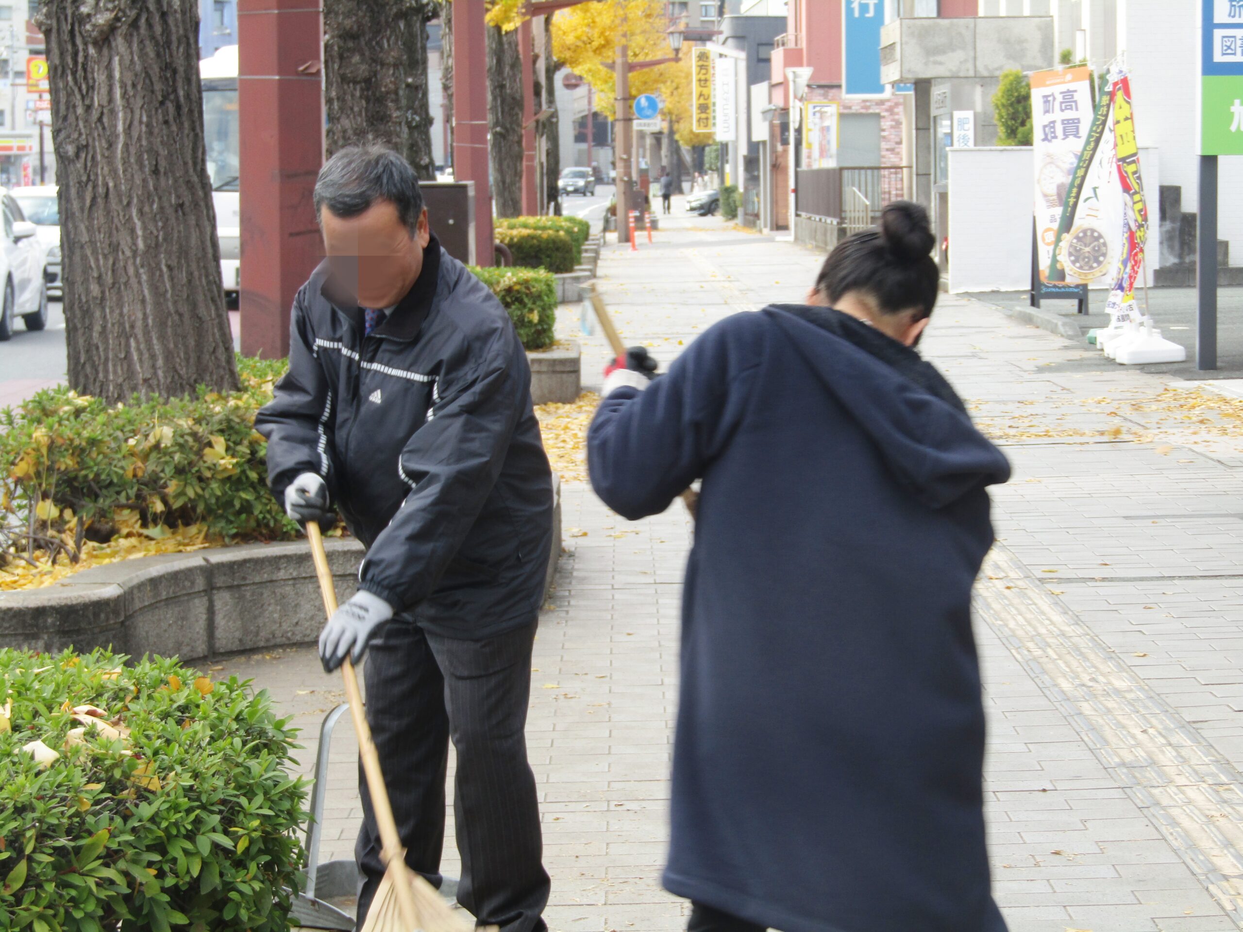 道行く人の視線を感じながらの清掃は少し小恥ずかしいですが、皆さんのおかげで歩道がきれいになりました!ありがとうございます!