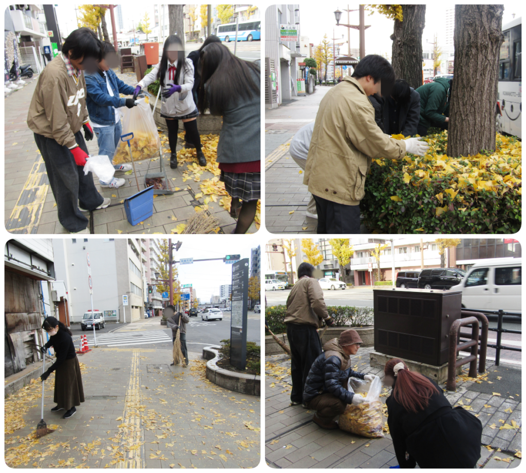 今年はこの時期にしてはあまり落ち葉がなく、校舎側の歩道、反対側の歩道の二手に分かれて清掃を行いました。いつもは楽しくゲームをしているサークルの時間ですが、年に一度このように地域清掃を行っています。