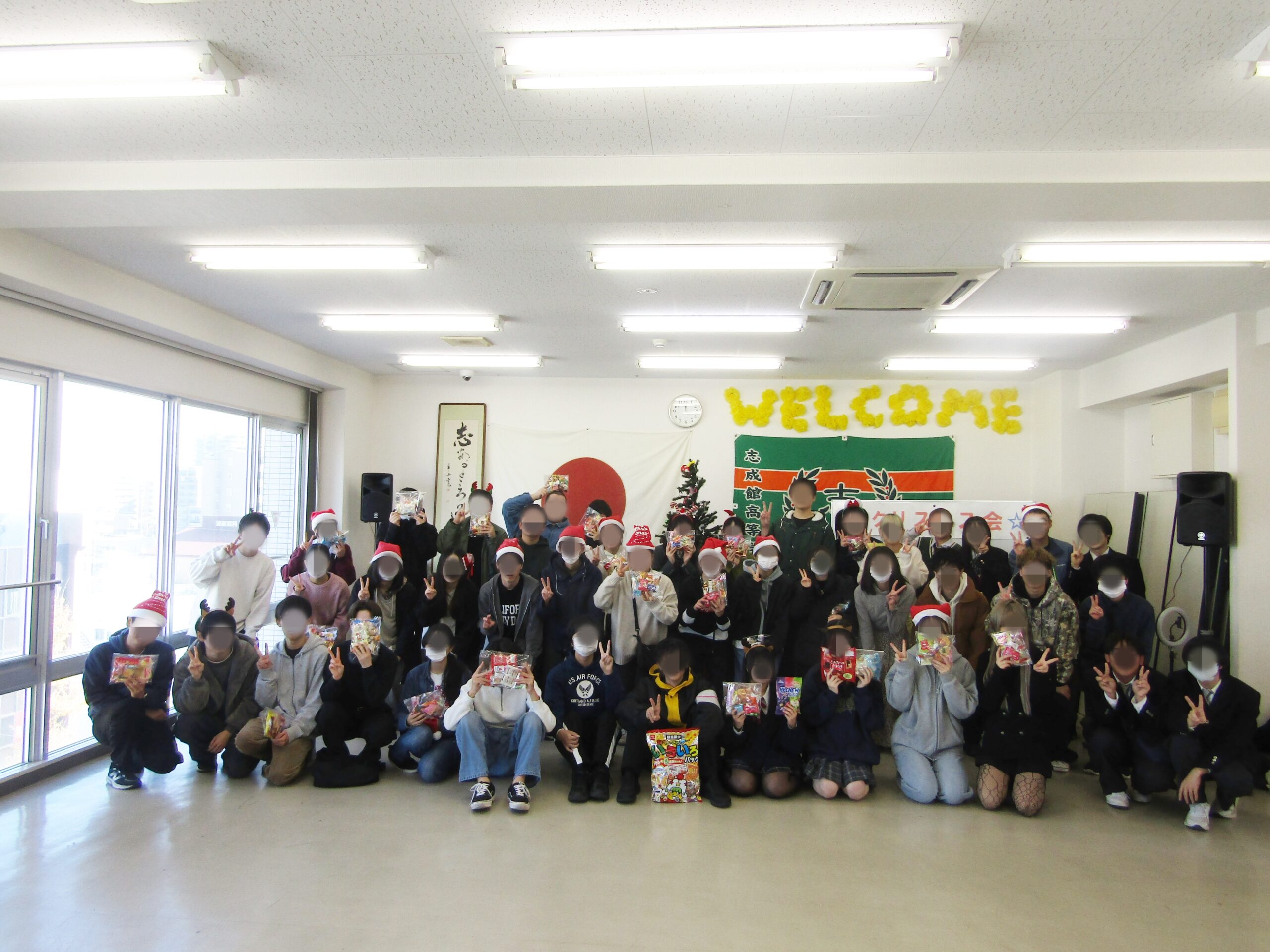 すっかりクリスマス気分の皆さん。サンタ帽やカチューシャをかぶった皆さんの和やかな様子をご覧ください。志成館とはこんな学校です。