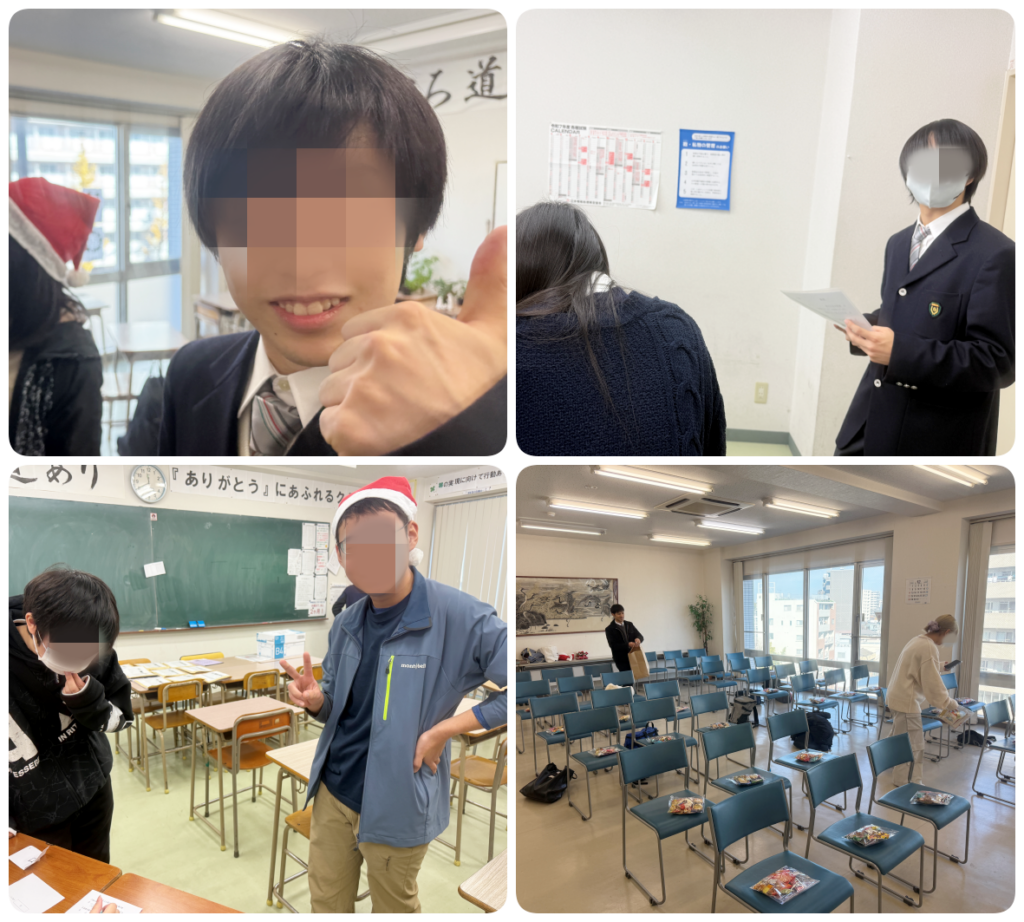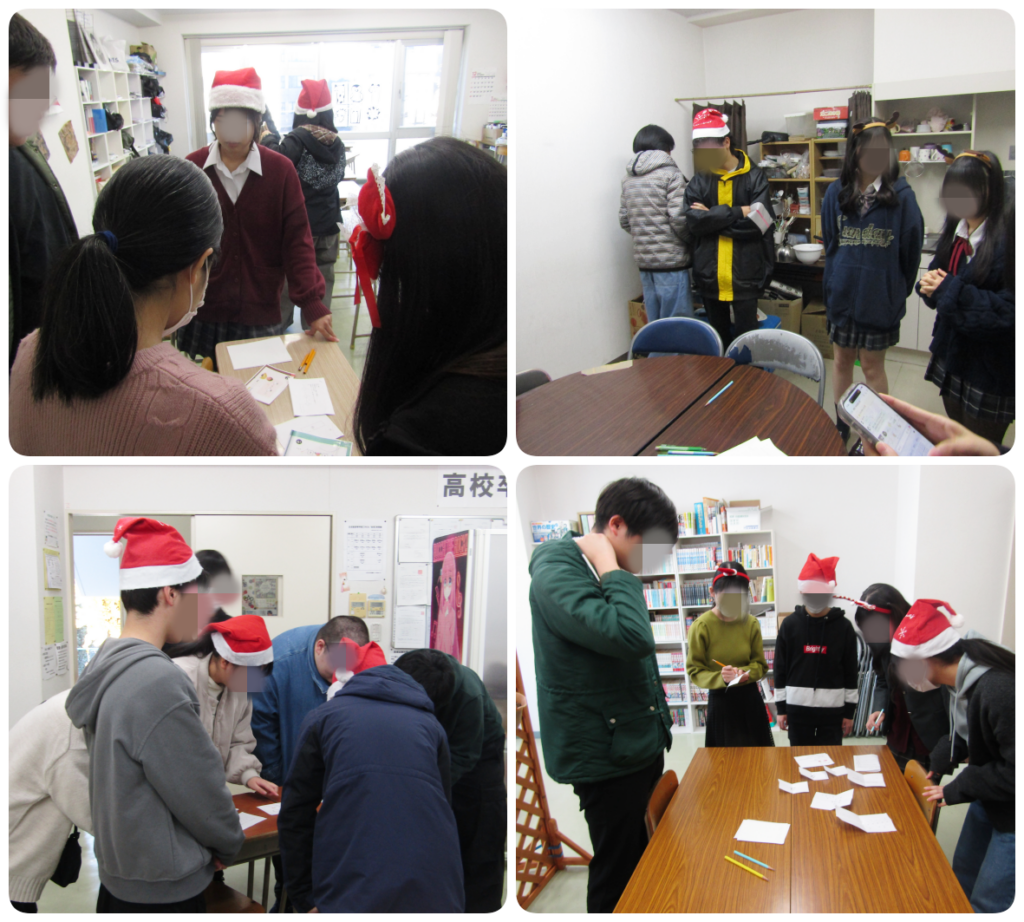 本日は終業式とクリスマス会が行われました。同時にレポートの締め切り日でもあったのでたくさんの生徒が登校してきてくれました。