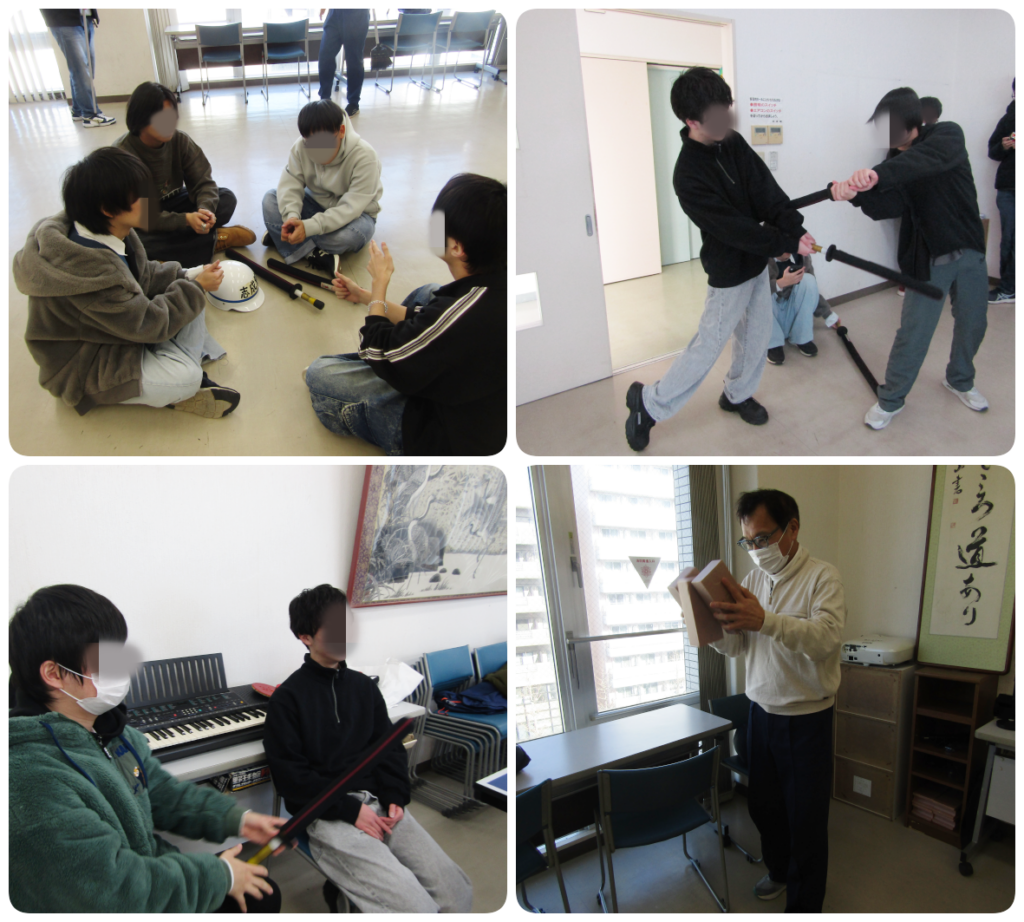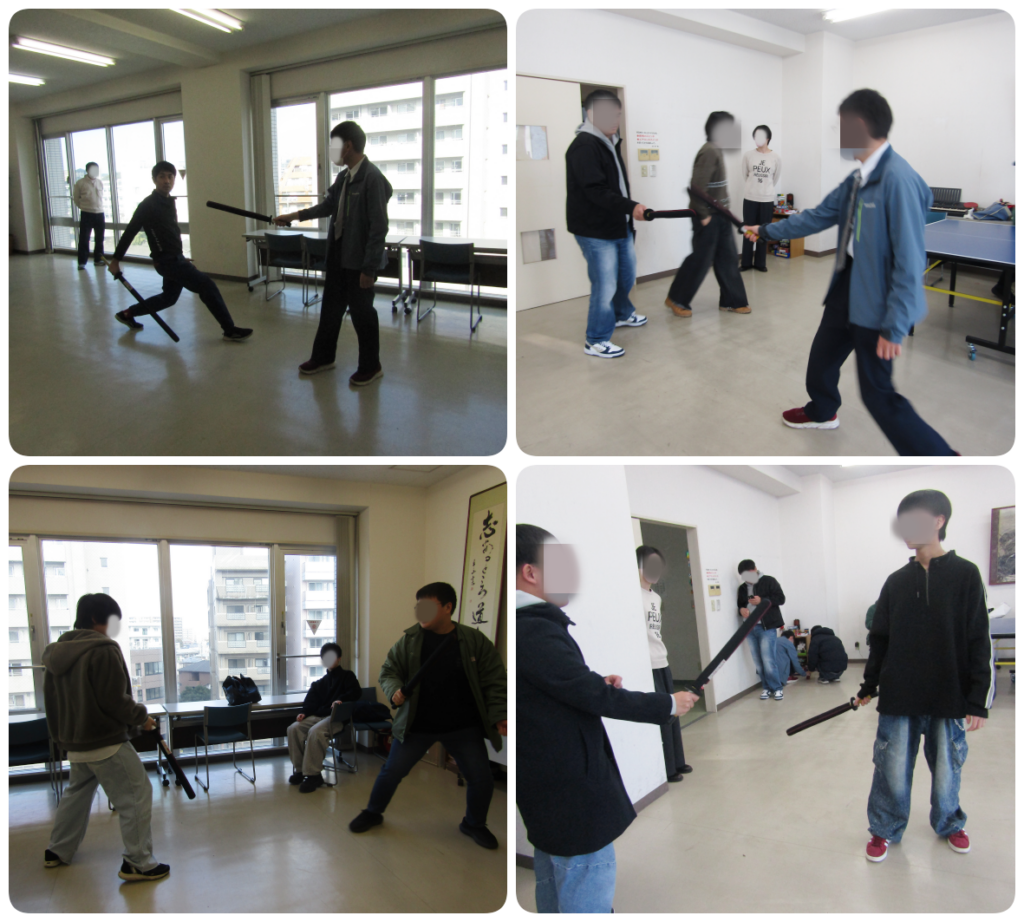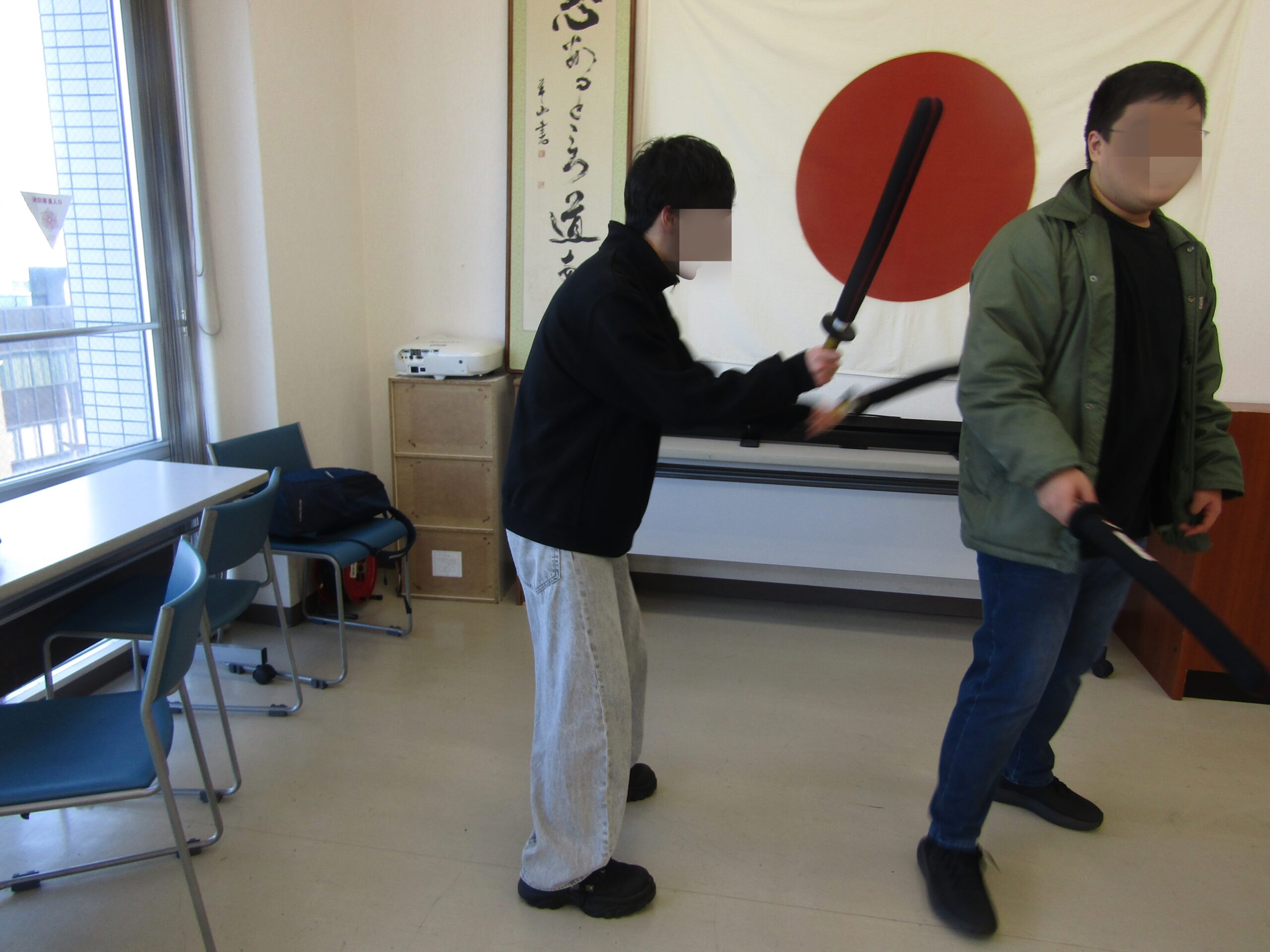 新年一発目の体育はちゃんばらを行いました!雨の影響で公園を使えませんでしたが、室内でたくさん動き回りました。
