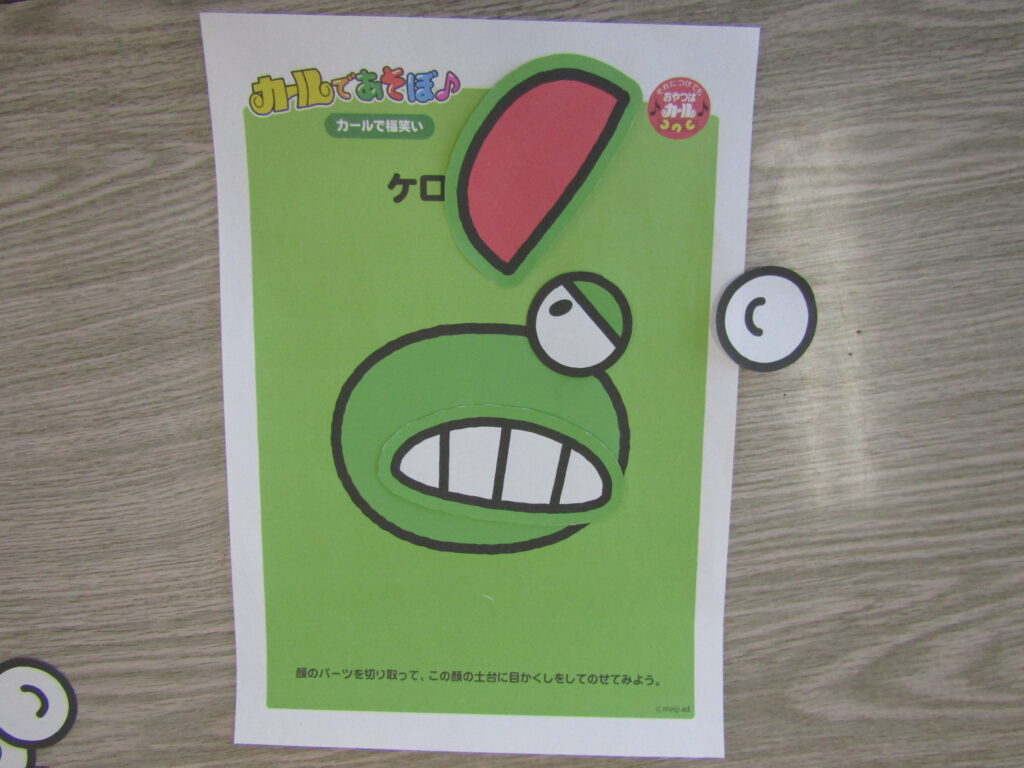 まずはイージーモードで、カールおじさんのカエルの顔を作ってみました。シンプルなのですが同じ目と口でもいくつも似たようなパーツがあり、なかなか苦戦しました。