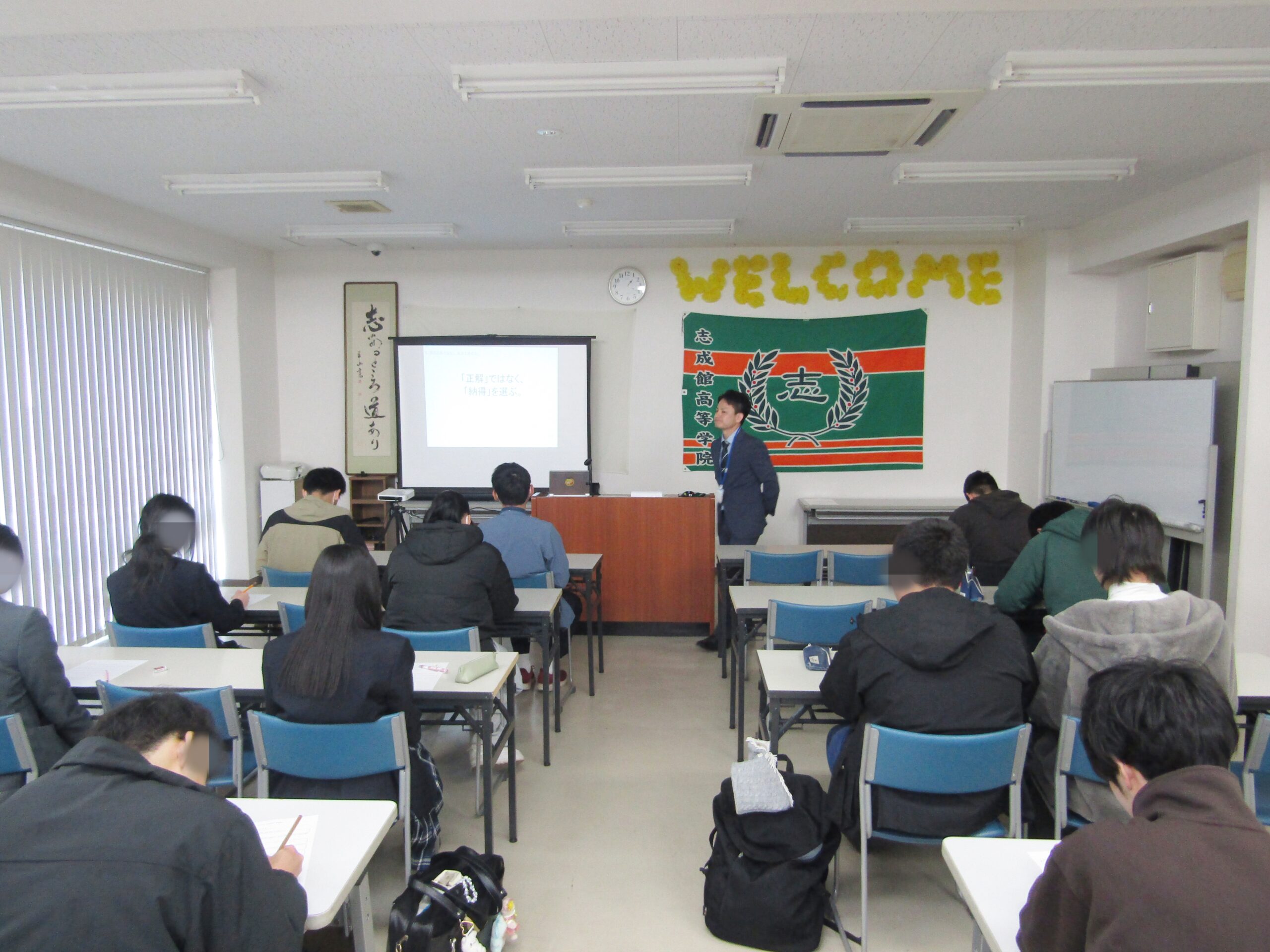 本日の総合探求の時間にて、3月に行われるドリコムセミナー2026進学ガイダンスに関するお話を伺いました。