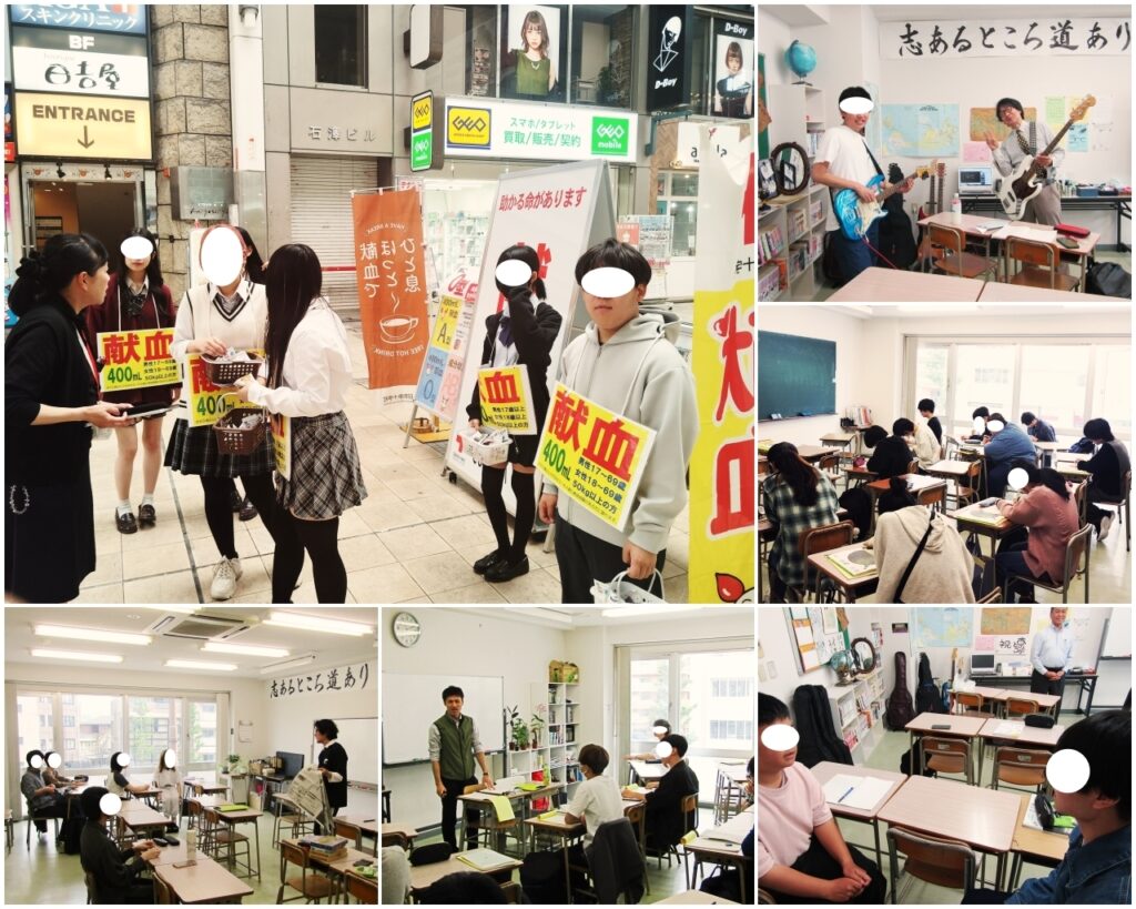 校外活動としては献血呼びかけボランティアに参加しました。この活動も回数を重ねると声掛けが上手になります。年齢制限や体質が理由で「献血はできくて、ごめんね」と丁重にお断りをされる方には、爽やかな笑顔で「ありがとうとうございます。お知り合いの方に進めていただけると嬉しいです」と答えて、相手の方もとても良い気分で献血の紹介カードを受け取ってくださいました。初めての回は「なかなかカードを受け取ってくれないです…。」「何と声かけて良いかがわからないです…。」と漏らしていた生徒たちの成長ぶりを間近で見れて、私(甲斐)は感激でした!いいもの見たです!