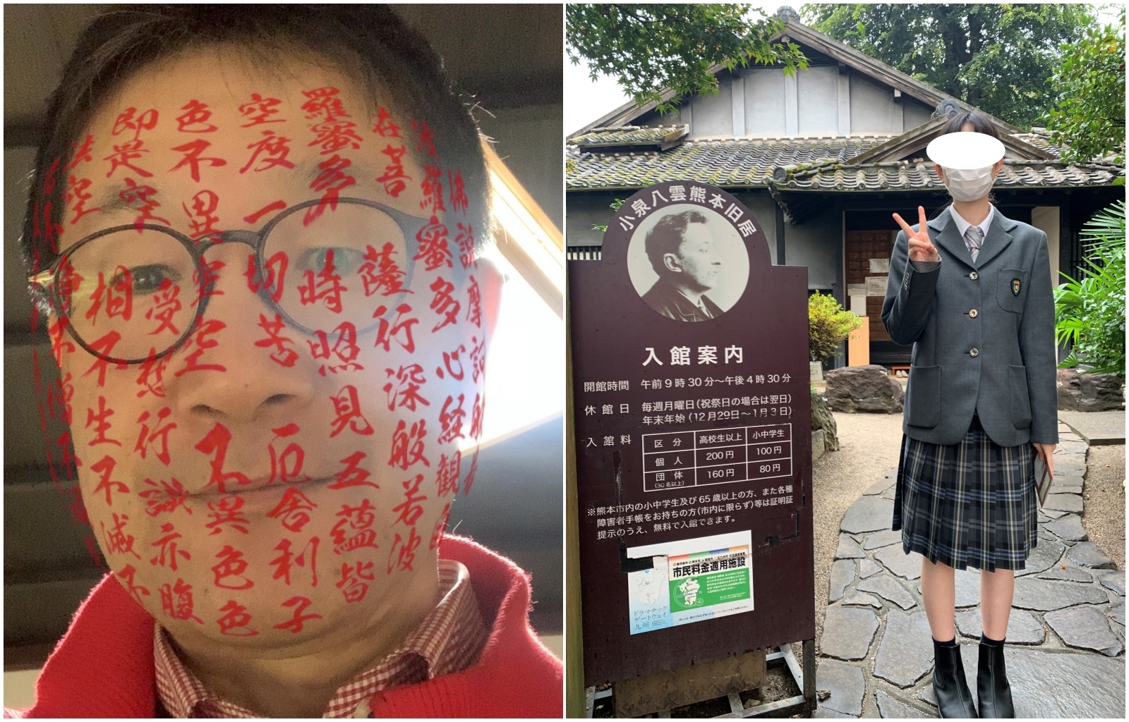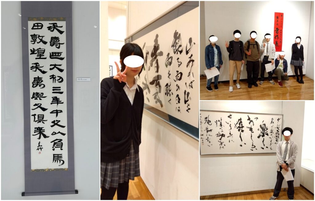 1年生は書道展へ、3年生は小泉八雲旧居へ行きました。書道展は本当に様々な書体で書かれた作品が飾ってありました。書道を履修していて、前期試験も乗り越えた1年生たちならば、「あっ、これが○○書だ!」や「〇〇体って、間近で見たら迫力あるなぁ」と感じてくれたことでしょう。それから、小泉八雲旧居は、時期によってはイベントがあります。顔いっぱいに漢字が写っているのは「耳なし芳一」のVR体験でしょうか。スマホからアクセスできる小泉八雲デジタルミュージアムでもちょっとしたVR体験ができたりもしますよ。