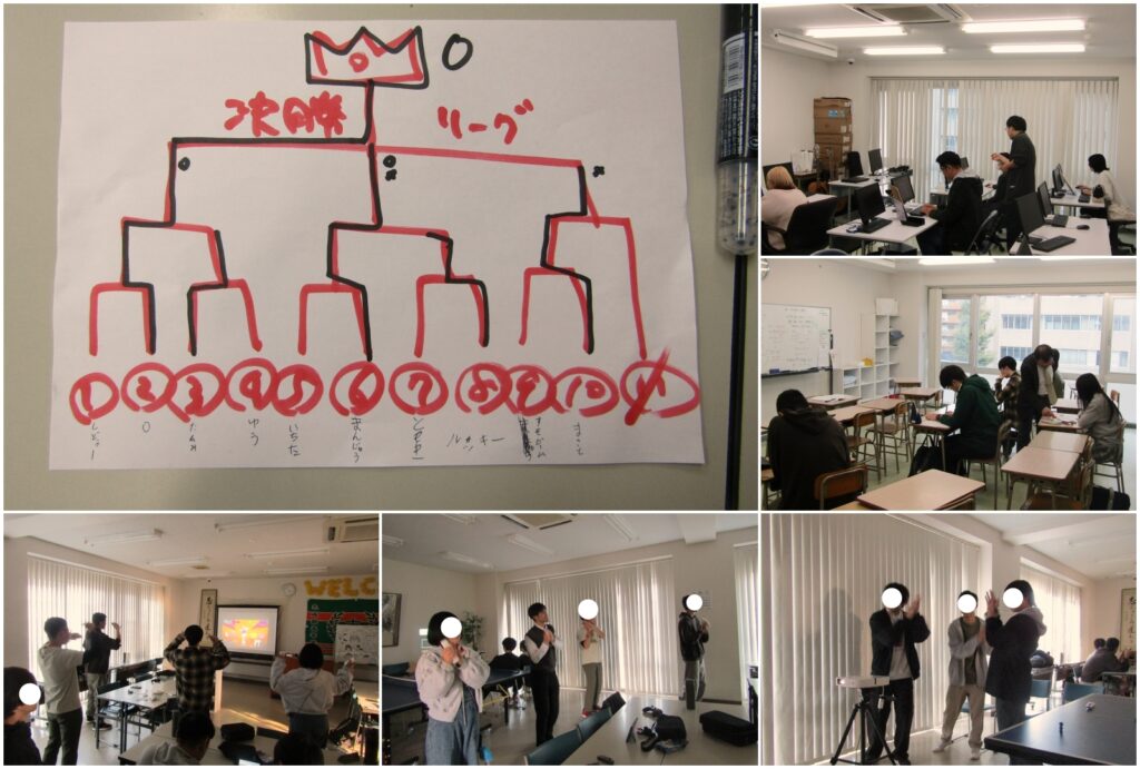 今日は以前から校内ポスターで告知していたゲーム大会、スマブラ競技が行われました。今回のトーナメントではこれまで無敗を誇っていた「キング・まんじゅう」が決勝戦でまさかの王位から陥落して、ただの「まんじゅう」になってしまうという波乱がありました。試合直前の数学学び直しの授業の疲れが響いたのでしょうか!? それから実は本日はゲーム大会はメインのはずでしたが、先週のサークルで行ったダンスゲームを楽しみたいという生徒がかなり多く、ゲーム大会は少し食われ気味だったことも勝敗に関わっていたのかもしれないです。