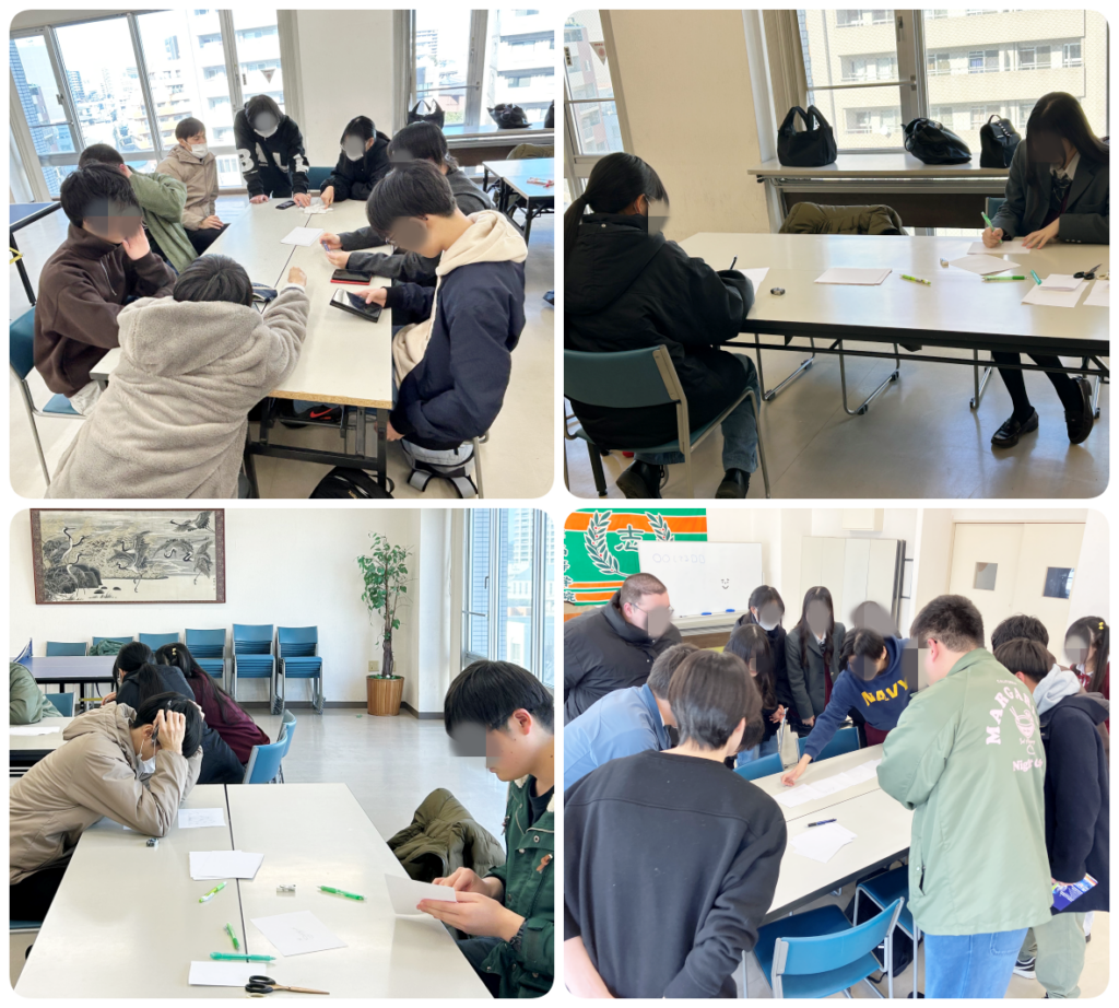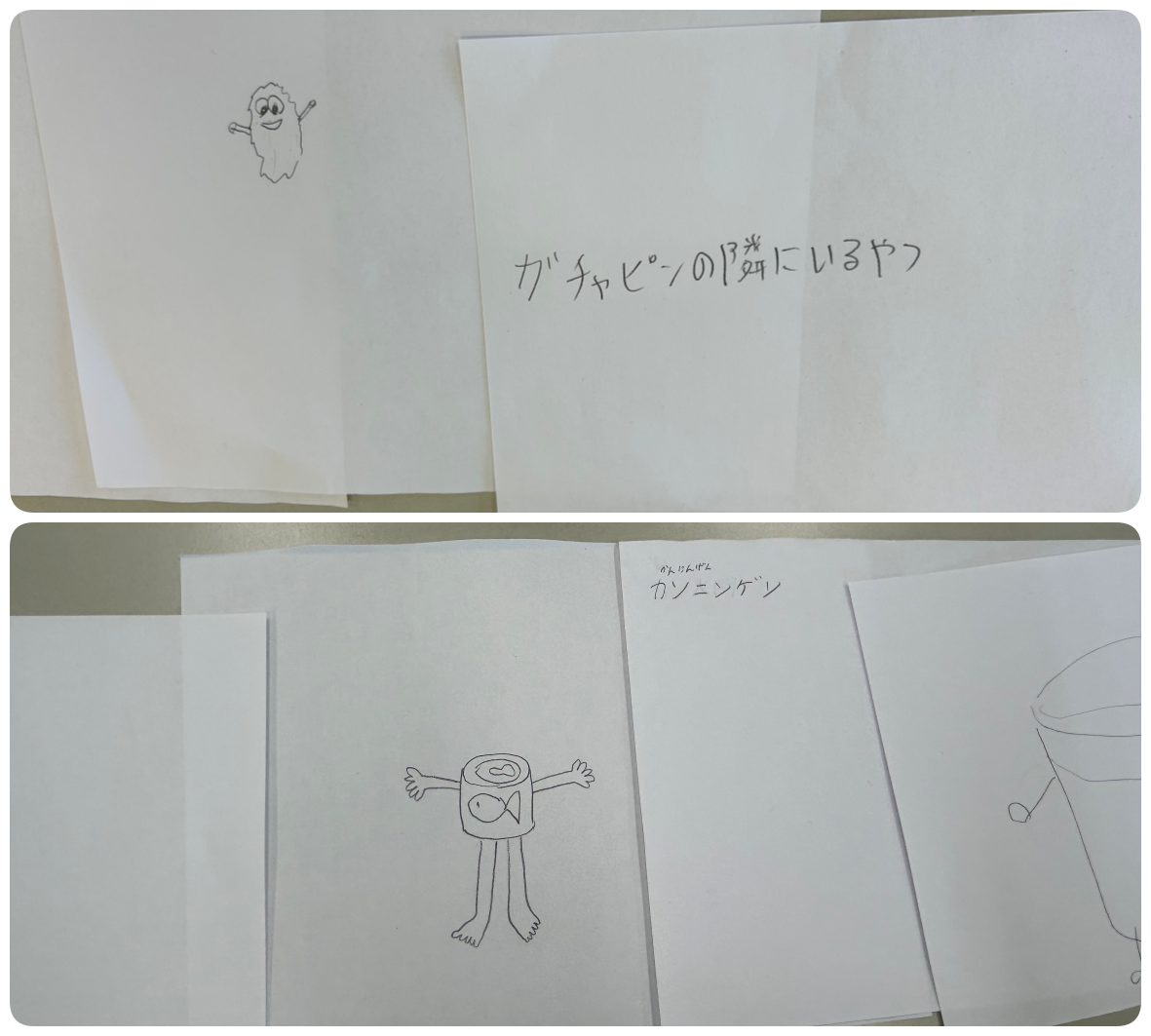 ちなみに昨日は「鯖缶を食べるチャーハン」と「組体操をするパペットスンスン」という二つのお題を設け、2チームに分かれてこのゲームをしました。なかなか生徒の皆さんのセンスが光るものが出来上がりましたよ。「なぜこうなった…。」絶望の淵に立つ主人公ばりのリアクションを取る生徒もいました。