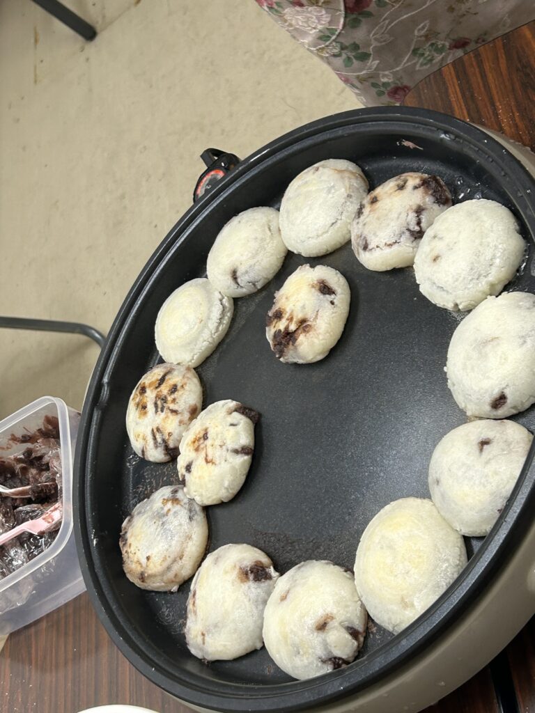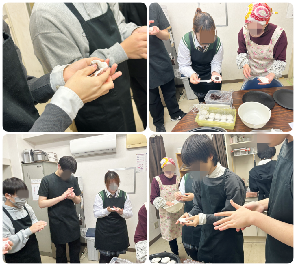 そんな3年生の門出を祝うべく、2年生がとっておきの梅ヶ枝餅をプレゼントしてくれました。10時くらいから作りはじめ、たくさんの梅ヶ枝餅をこさえました。時折、餅にあんこを包む工程に苦戦し、シュウマイのようになってしまった梅ヶ枝餅の姿に思わず笑ってしまいました。そんなこんなで完成し、3年生の皆さんは喜んでいくれていたようで何よりです。