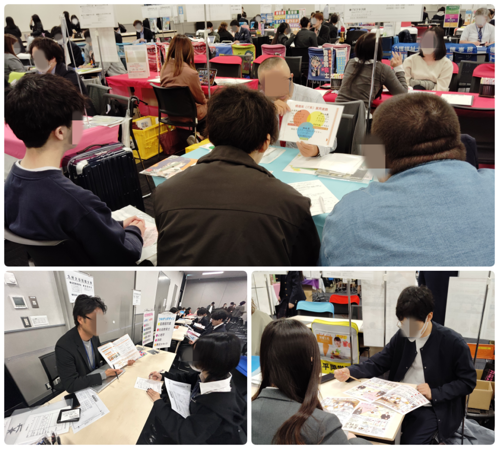 本日はミラツク★フェスに参加しました。全国の様々な大学、専門学校、企業が集い、進路について考えるにはとっておきの機会でした。到着してすぐにブースに座ろうかと生徒の皆さんは始め意気込んでいましたが、なんと参加者が多く圧倒されてしまいましたね。時間がたつにつれ混雑が緩和され、ようやく生徒たちは気になるブースに座ることが出来ていました。