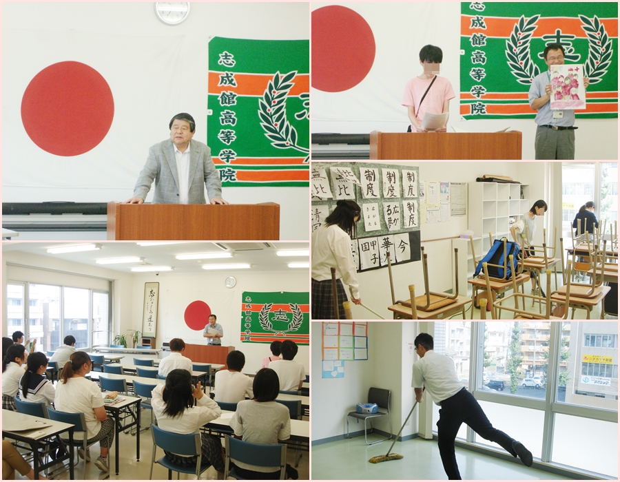 【平成28年9月5日(月) 始業式および掃除】 2016年9月5日 コメントはまだありません 夏休みが終わり、今日から学校が始まりました。 今日は台風の影響が心配されましたが、見事に快晴でした。 生徒たちはそれぞれに夏休みの思い出を引っさげて登校してくれました。 始業式では校長先生のお話の後に、生徒の一人からJRC(ジュニア赤十字)加盟についての 提案がありました。 彼の熱意がほかの生徒に伝わり、学校全体でJRCに加盟して活動に当たることが決まりました。 共有:TwitterFacebookいいね:いいね 読み込み中… タグ: 始業式