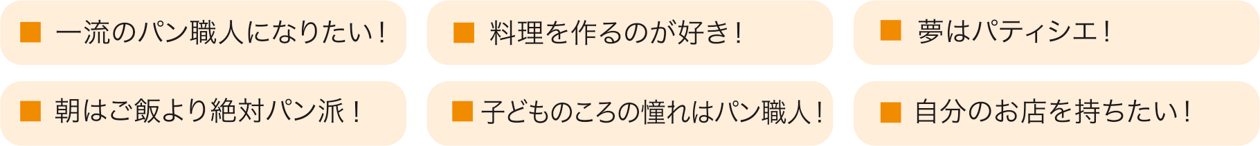 パンの本場とも言われるフランスの言葉で、日本語では「パン職人」という意味です。単にパンを作るだけではなく、商品開発や販売にも携わることもあります。