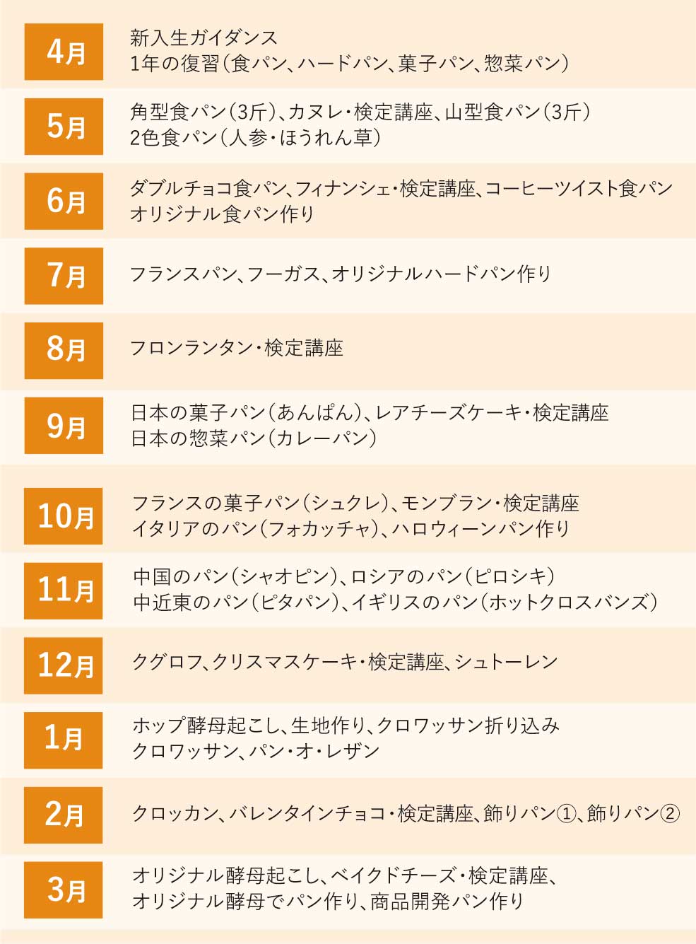 ■製菓製パン科年間カリキュラム
